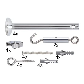 I sistemi di illuminazione a funi sono costituiti da diversi componenti che possono essere assemblati singolarmente a seconda delle esigenze, se il sistema di illuminazione a funi non viene acquistato come set completo. Per installare un sistema di illuminazione a funi con tutti gli apparecchi a soffitto o a parete, sono necessari i cavi appropriati, le staffe a parete, i tendicavo, i distanziatori o i deviatori a soffitto ed eventualmente un trasformatore. Quest'ultimo è necessario se si è optato per un sistema di illuminazione a funi. Poiché funziona solo con la bassissima tensione di sicurezza a 12 V, la tensione di rete deve essere convertita con il trasformatore.