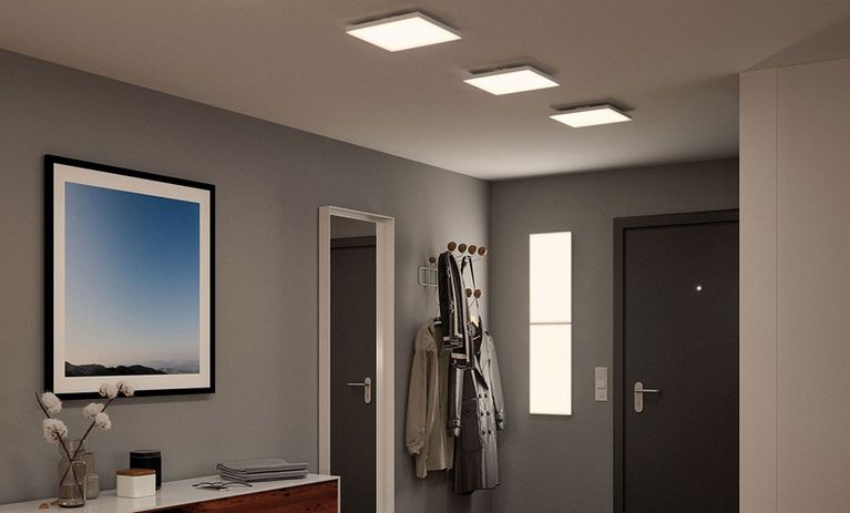 l'elemento centrale del corridoioUn'illuminazione luminosa di almeno 100 lumen per metro quadrato è importante per avere corridoi luminosi in cui è possibile orientarsi facilmente e svolgere qualsiasi attività, dall'indossare le scarpe alla scelta dell'abito da sera. Le plafoniere o i faretti da soffitto a più luci sono solitamente utilizzati nei corridoi, dove la luce può essere distribuita in modo uniforme. I pannelli LED sono molto apprezzati anche per la loro distribuzione luminosa ampia e omogenea e, non da ultimo, per il loro design piatto e discreto, che fa apparire il corridoio più grande ed è quindi particolarmente utile nei corridoi bassi.