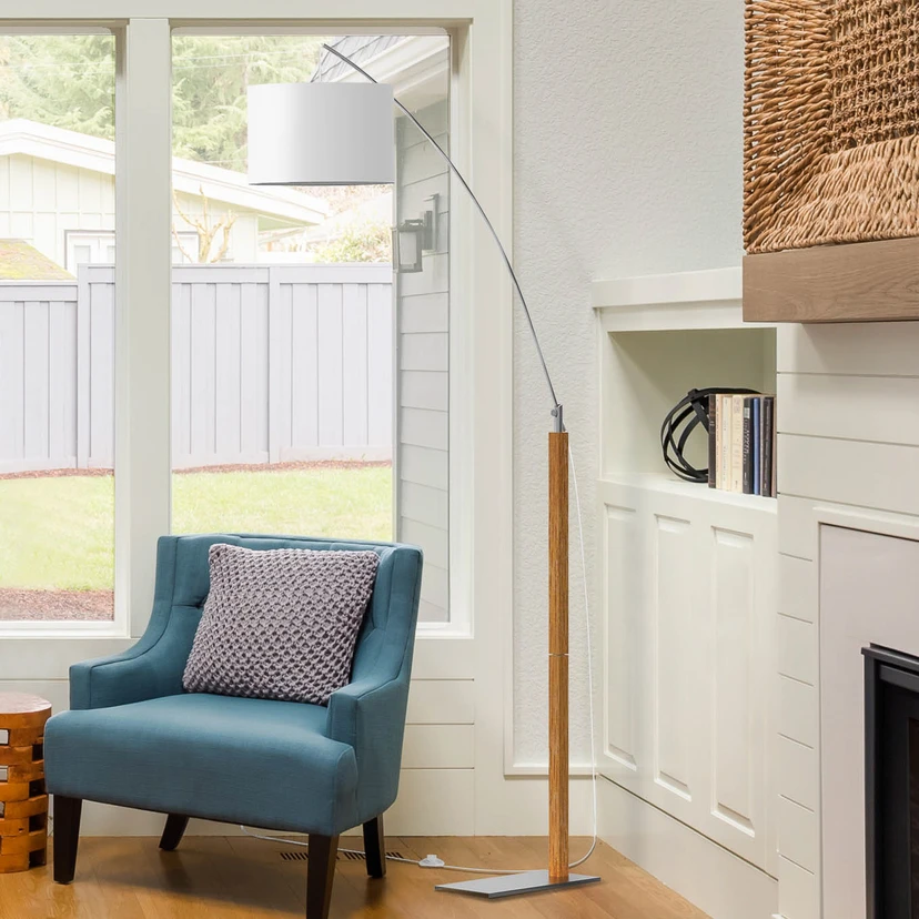 Lampada da terra ad arco Rainbow regolabile in altezza con paralume in tessuto bianco Il sofisticato mix di materiali e colori e la forma quasi minimalista rendono la lampada da terra ad arco Rainbow un vero e proprio punto di forza negli interni anche quando è spenta. L'ampio paralume in tessuto bianco fa sì che la luce della lampadina utilizzata, che brilla sia verso l'alto che verso il basso e traspare tutt'intorno attraverso il tessuto, sia distribuita su un'ampia superficie. Questo crea un'atmosfera molto accogliente. Rainbow è comodo perché l'altezza del telaio può essere regolata da 148 cm a un massimo di 190 cm. Può essere comodamente azionato tramite l'interruttore a pedale integrato nel cavo di alimentazione.