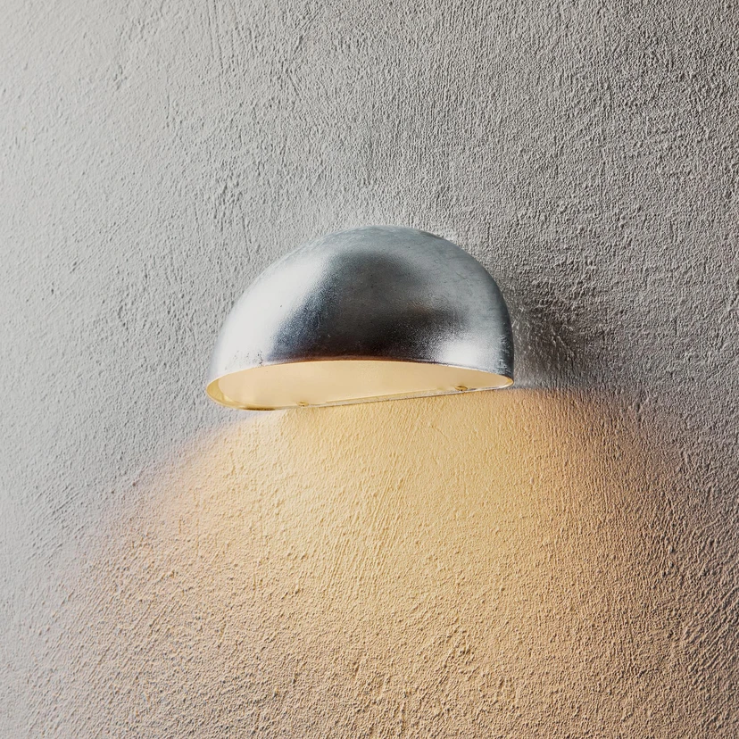 Applique da esterno Bergen, che emette luce verso il basso, può essere utilizzata sia in ambienti interni che in aree esterne protette. Nota: la superficie del rame diventa verdastra con il tempo. Si tratta di un processo naturale. Prima che questo processo chimico sia completo, la superficie può apparire irregolare. Caratteristiche di qualità e sicurezza: Classe di isolamento I con messa a terra, grado di protezione IP 23.