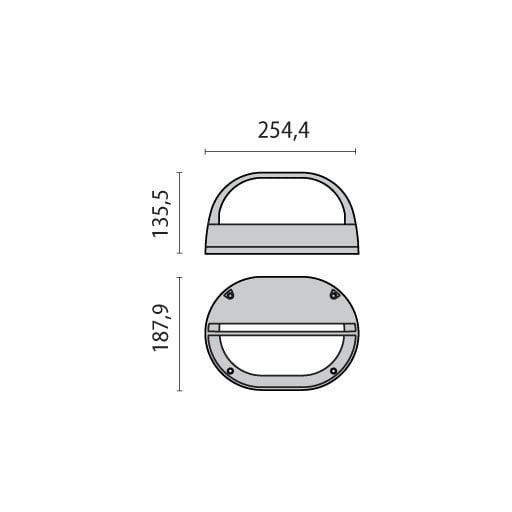 Diretto attraverso uno schermo, l'apparecchio a parete esterna brilla verso il basso e fornisce luce sulle facciate di edifici commerciali o privati. Tipica della serie Eko è la forma e la composizione ovale in alluminio pressofuso e un diffusore in vetro stampato smerigliato dall'interno.