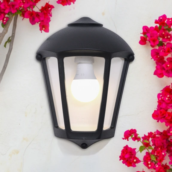 Applique da esterno Fabio, nero/chiaro, resina sintetica, E27 CCT