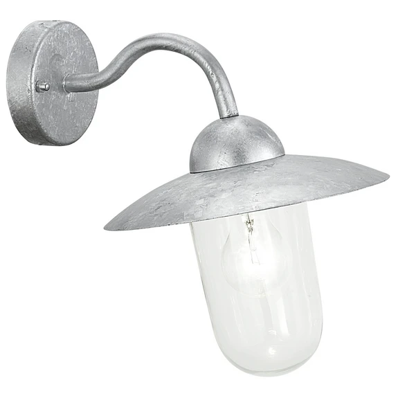Milton in acciaio zincato pende leggermente obliqua alla parete e ciò le conferisce un effetto particolare. Il vetro trasparente garantisce un'ottima illuminazione. Un'applique da esterno che si può utilizzare quasi in ogni ambiente e si adegua ad ogni stile.