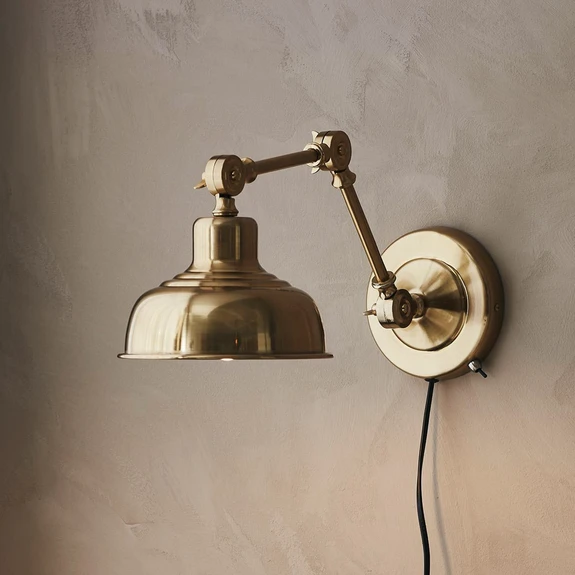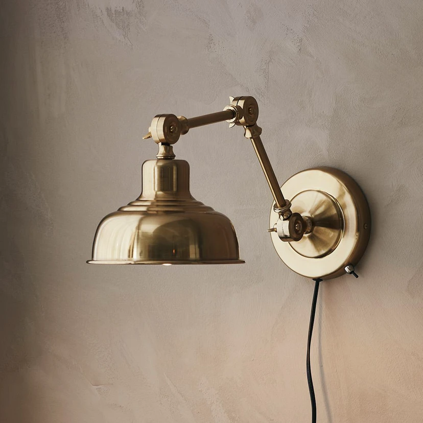 Applique Grimstad in look ottone per la zona giorno e la zona notte Scoprite l'applique Grimstad, un elemento di illuminazione che non solo è di grande effetto grazie alla finitura in ottone antico e alla robusta struttura in ferro, ma crea anche accenti d'atmosfera in soggiorni e camere da letto. L'elegante finitura color ottone aggiunge un tocco di classicità e calore a qualsiasi ambiente, mentre la solida struttura in ferro promette una lunga durata. L'installazione è semplice, in quanto la lampada è dotata di una pratica spina che consente di posizionarla in modo flessibile senza dover ricorrere a complesse installazioni elettriche. L'applique Grimstad è un'illuminazione di grande stile, che trasforma la luce nel vostro rifugio personale - con cavo di alimentazione e spina, interruttore sull'alloggiamento - può essere collegata anche tramite presa a muro.
