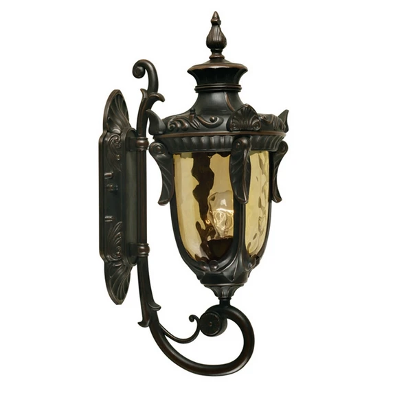Sia i colori - bronzo anticato per la struttura e ambra per il vetro - che la forma e gli ornamenti ricordano una lanterna stradale del 1900. L'applique da esterni PHILADELPHIA porta tutto il fascino di quell'epoca nel vostro giardino. La patina di bronzo è applicata a mano.