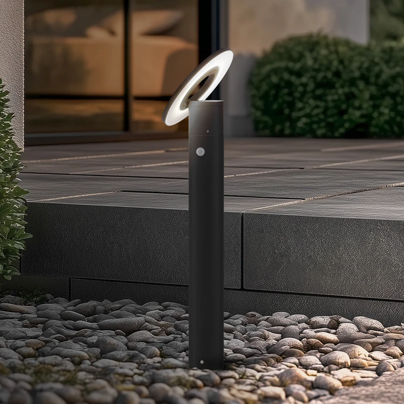 Lampione a LED Tovio in design antracite con sensore di movimento e testa mobile