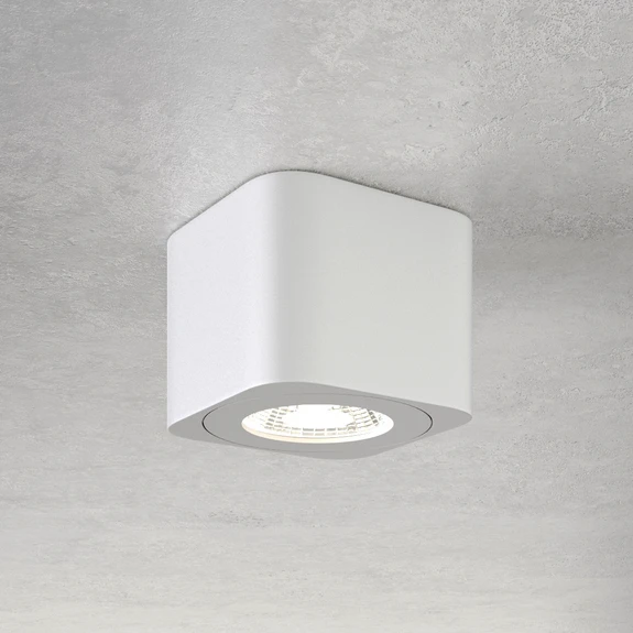 Il downlight a LED Palmi minimalista in bianco risplende di un discreto understatement. La lampada a LED consente inoltre di risparmiare energia e di tutelare l'ambiente. La piacevole luce bianca calda del downlight Palmi viene diffusa nella stanza attraverso una lente rigida con un angolo di 120°. La struttura metallica bianca armonizza perfettamente con l'aspetto intramontabile della lampada che si adatta pertanto ad ogni stile di arredamento. La lampada di design a LED incarna così la certezza stilistica in fatto di illuminazione di locali residenziali e commerciali. La forma cubica della lampada con angoli smussati conferisce al downlight Palmi un tocco armonioso.