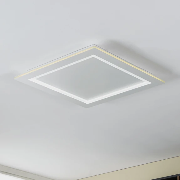 Padrogiano-Z Plafoniera LED EGLO Connect, 60 x 60 cm, quadrata La grande plafoniera LED Padrogiano-Z della linea connect.Z smart home di EGLO è realizzata in metallo bianco e con una cornice in plastica sulla parte superiore. I LED integrati forniscono una luce piacevole a seconda delle esigenze, perché grazie al gioco di colori RGB e CCT è possibile selezionare sia la luce bianca nella gamma da bianco caldo a bianco freddo (anello interno) che l'illuminazione colorata da una varietà di colori brillanti (anello esterno). Sia l'anello esterno che quello interno possono essere accesi, spenti e dimmerabili separatamente. La plafoniera si controlla tramite un'app gratuita (AwoX Home Control) e consente di accedere a funzioni aggiuntive come dimmer, timer, simulazione di presenza e molte altre. Il pannello LED è controllato tramite Bluetooth e ZigBee 3.0 e può essere controllato anche tramite assistenti vocali compatibili. In alternativa, la plafoniera intelligente può essere controllata anche tramite un telecomando disponibile separatamente. La plafoniera quadrata si adatta a molti stili di interni e offre un'illuminazione variabile e d'atmosfera per ogni ambiente e ogni situazione.