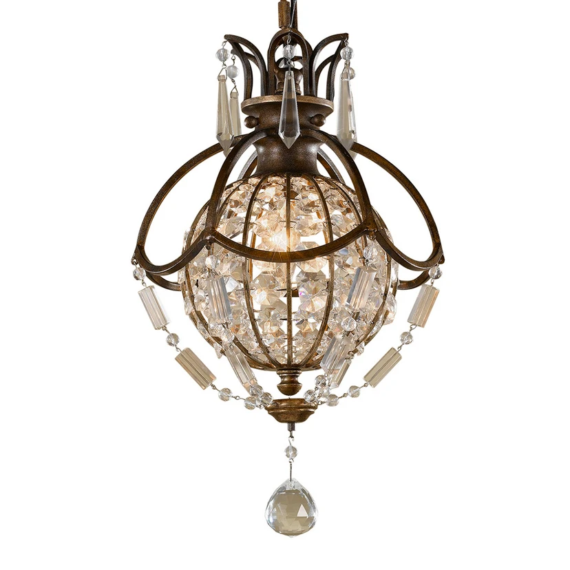 Lampada a sospensione sferica Bellini con cristalli di quarzo