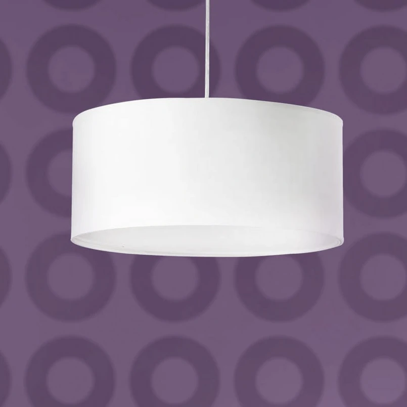 Sobria lampada sospesa SEVEN con schermo di tessuto