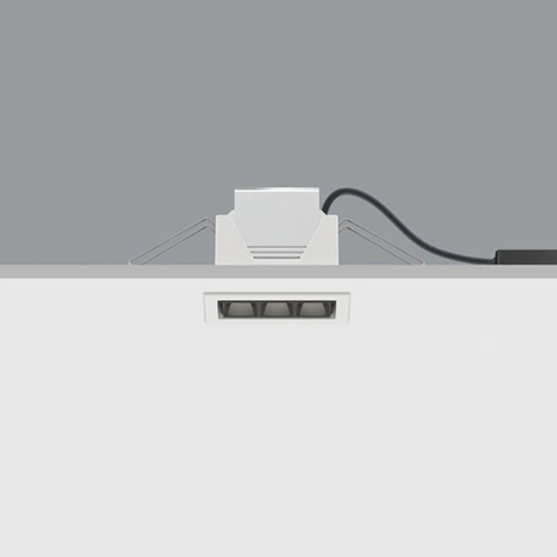 Il downlight da incasso rettangolare Compar fornisce un'illuminazione generale e di lavoro su vasta scala, per esempio negli uffici moderni. È dotato di LED ad alta potenza la cui luce viene emessa come un ampio cono attraverso la tecnologia delle lenti in polimero ottico ed è ridotta dall'abbagliamento da una griglia antiriflesso. Il design compatto, un'unità di controllo esterna che può essere posizionata in modo variabile sopra il controsoffitto, le molle di montaggio e il collegamento per mezzo di un terminale a innesto mantengono basso lo sforzo di installazione. L'uscita della luce può essere controllata tramite dimmer esterni a taglio di fase.