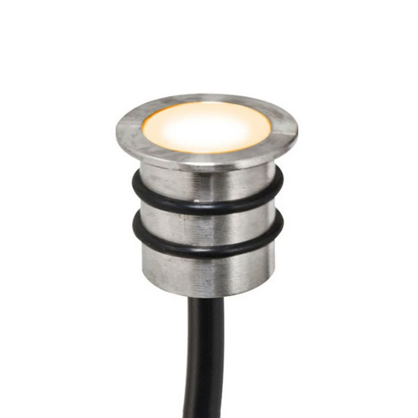 Per accenti visivi in interni o esterni - luce LED da incasso rotonda 12V DC LD21, Ø 1,8 cm La luce LED da incasso a bassa tensione LD21 con corpo in acciaio inossidabile offre un punto luce Mod in numerosi ambienti. Nella testa della luce rotonda è integrato un LED bianco. L'apparecchio da incasso fornisce accenti visivi sulle scale, con diverse unità per un cielo stellato decorativo o una luce d'accento e di orientamento nei pavimenti dei cortili e nei vialetti delle aree esterne. Può essere utilizzato anche nella costruzione di mobili (etichettatura MAX) - caricabile con max. 1.000 kg, 25 km/h - cavo di collegamento lungo 2 m, con estremità libere - fascio luminoso molto ampio (100°)