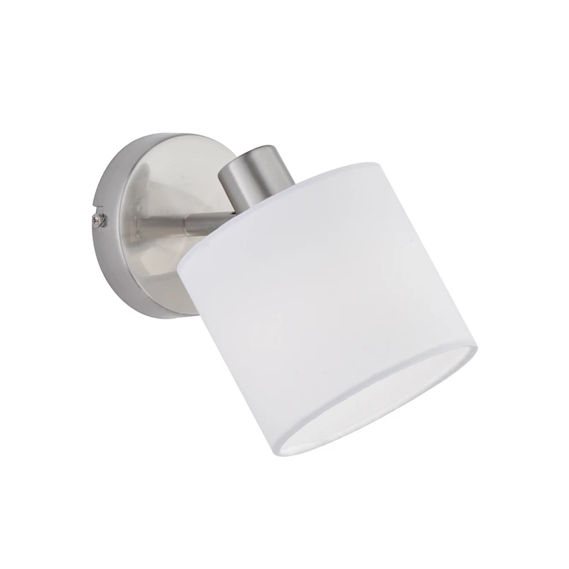 Faretto da parete Tommy, nichel/bianco, larghezza 12 cm, metallo/tessuto