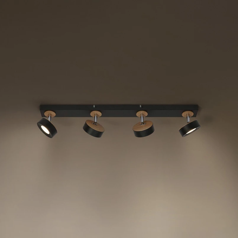 Il moderno faretto da soffitto LED Pluto offre un'illuminazione flessibile degli ambienti grazie ai suoi quattro faretti regolabili e piace anche per i suoi dettagli in legno. Caratteristiche del prodotto: la famiglia di lampade comprende varianti con un massimo di 4 teste faretto. Materiale dell'alloggiamento: metallo e legno. Teste regolabili. Vantaggi del prodotto: alloggiamento di alta qualità con superficie opaca delle parti metalliche. Facile da montare. Campi di applicazione: applicazioni in interni. Corridoi, ingressi, scale, soggiorni, cantine. Cucine, aree di lavoro. Montaggio a soffitto e a parete. Dotazione tecnica: accessori completi per il montaggio e il collegamento inclusi.