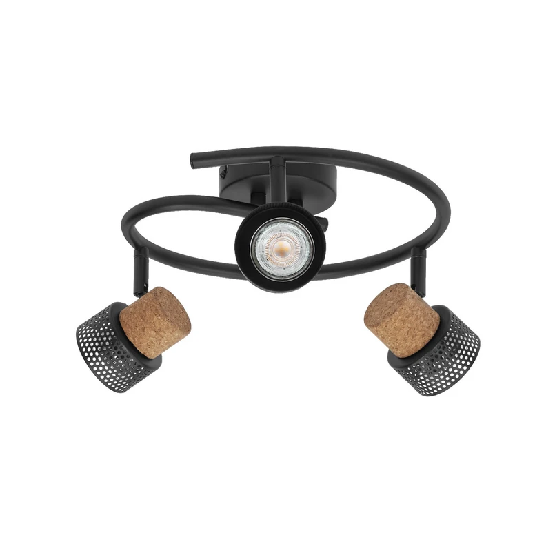 Faretto da soffitto LED CORK SPIRAL con tre faretto LED GU10 dimmerabili e dettagli in sughero