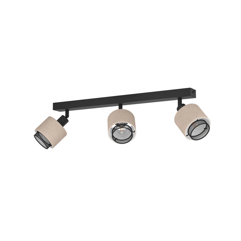 Faretto da soffitto Rosley, lunghezza 43 cm, nero/naturale, a 3 luci.