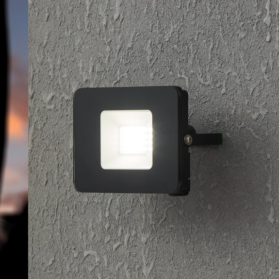 Faedo 3 faretto LED da esterno in nero con staffa di montaggio, IP65 Un muro, una sporgenza del tetto o persino un angolo di un edificio: il faretto LED da esterno di LASS può essere montato ovunque grazie alla staffa di montaggio flessibile per illuminare un'ampia area della proprietà. Con un grado di protezione IP65, il faretto da esterno è resistente alla polvere e protetto dai getti d'acqua e può essere esposto alle intemperie senza problemi.