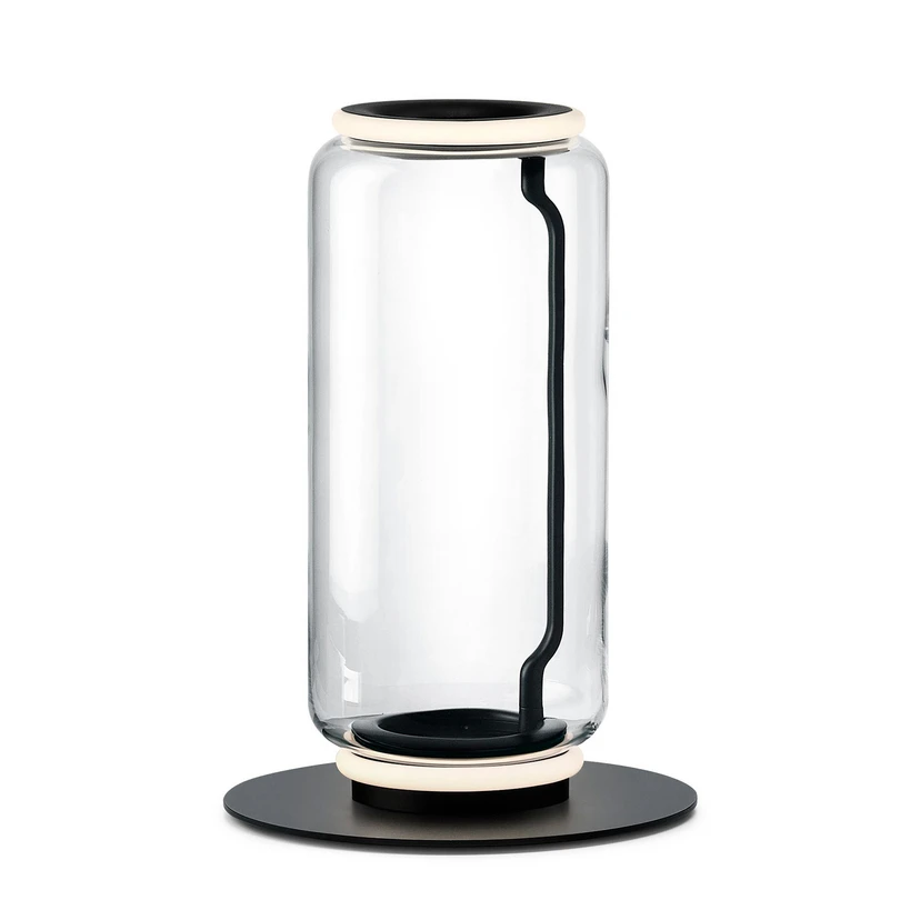 Un unico elemento in vetro ricorda una lanterna. È l'elemento base di ogni lampada Noctambule, composta da un numero diverso di elementi e da una base. Il cavo di alimentazione e l'interruttore a pedale installato su di esso vengono utilizzati per accendere/spegnere e dimmerare la luminosità dal dieci al cento per cento e viceversa.