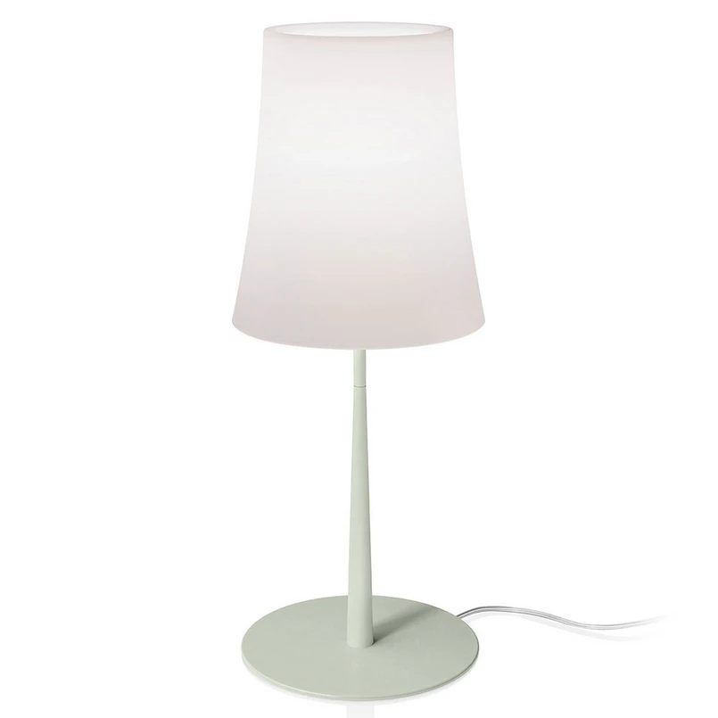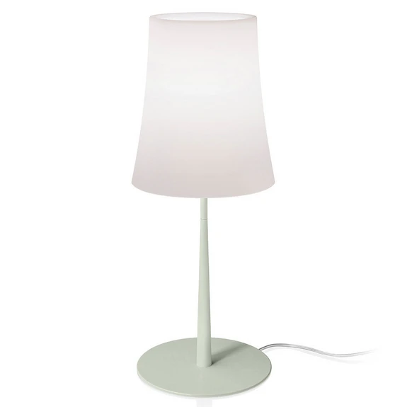 Lampada da tavolo Birdie Easy Grande La lampada da tavolo Birdie Easy Grande è una nuova versione della serie Birdie ed è stata creata dai designer Ludovica e Roberto Palomba. Il concetto è caratterizzato dall'asta dritta e ininterrotta. La lampada da tavolo Grande ha anche un paralume traslucido, leggermente rivolto verso l'esterno, in policarbonato stampato a iniezione e una base rotonda in lega di zinco pressofusa. Il design è destinato specificamente al settore dell'ospitalità, in quanto è senza tempo ed elegante e ha il colore giusto per ogni concetto di stanza. Le composizioni della coppia di designer Ludovica e Roberto Palomba sembrano abbastanza semplici a prima vista, ma sono ben studiate e brillano per i materiali elaborati e l'eleganza senza tempo.