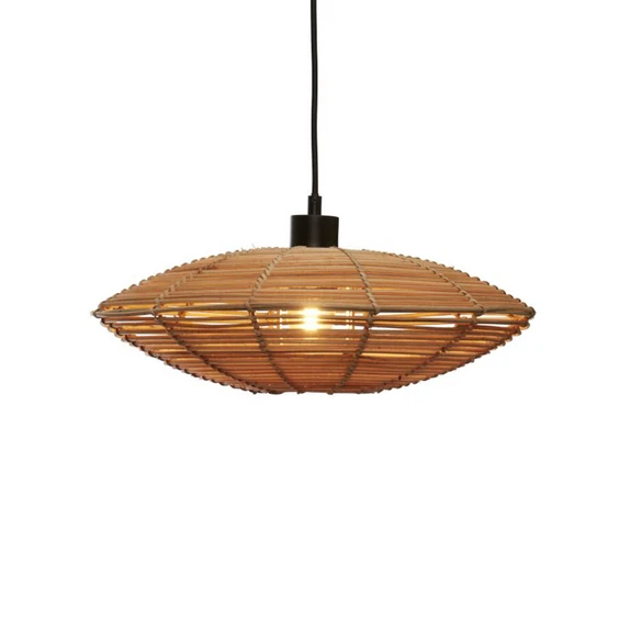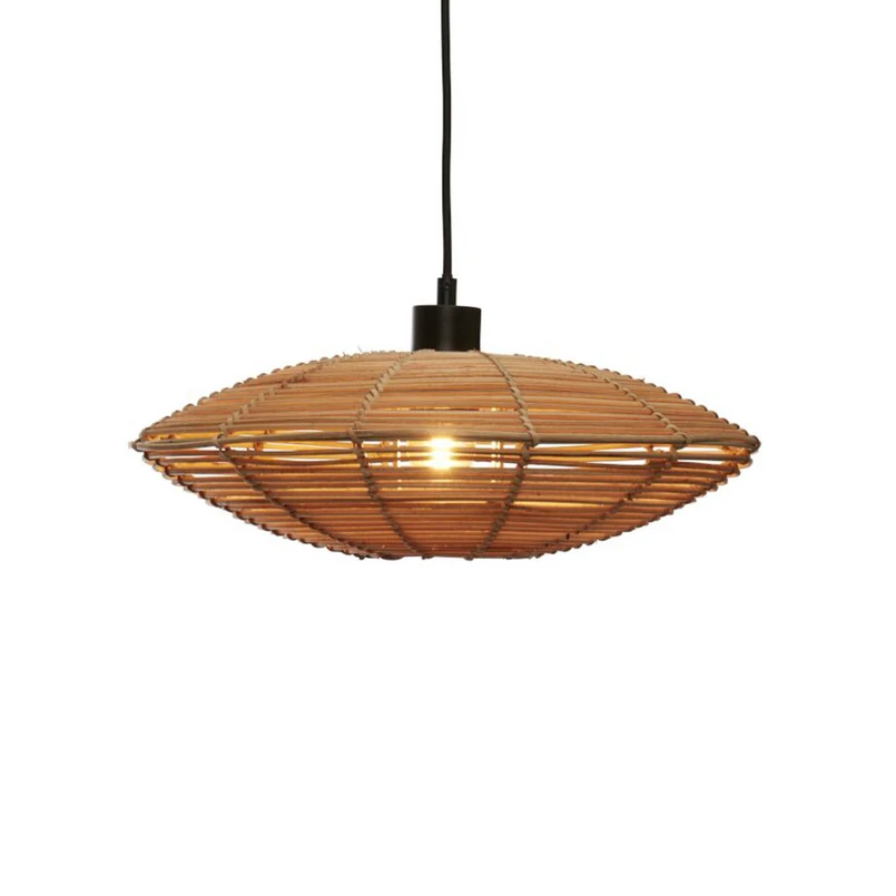 Lampada a sospensione Tanami in rattan con paralume piattoIdeale per illuminare il tavolo del soggiorno o della sala da pranzo è la lampada a sospensione Tanami. Il paralume piatto è realizzato in rattan e crea un bellissimo accento naturale nell'ambiente circostante. La sospensione è di colore nero e completa armoniosamente l'insieme. La luce viene emessa senza abbagliare l'ambiente circostante e può essere regolata con un dimmer di fase esterno e una lampadina compatibile.Informazioni su Good & Mojo:- marchio sostenibile e sociale- gran parte dell'illuminazione è realizzata a mano da artigiani in piccole comunità del Vietnam- materiali sostenibili ricavati da piante abbondanti nel sud-est asiatico- per ogni lampada venduta, la Fondazione WakaWaka riceve una donazione e viene anche piantato un albero attraverso i progetti di riforestazione Eden