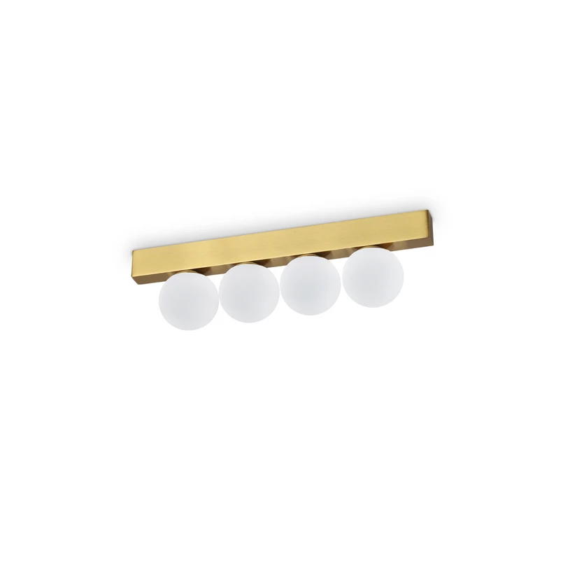 Ideal Lux Lampada a plafoniera Ping Pong in ottone a 4 luci, vetro opalino