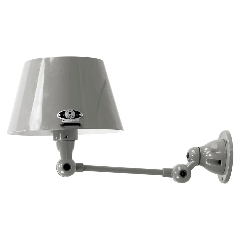 Applique flessibile Aicler AID701 di Jieldé Dopo che la ricerca di un'applique adatta al suo laboratorio si era rivelata infruttuosa, negli anni '50 Louise Domecq progettò da solo un'applique che rispondesse alle sue esigenze. Die fu la nascita del produttore francese Jieldé, che produce, tra l'altro, l'applique Aicler AID701 in un elaborato lavoro manuale. Come tutte le lampade del produttore, anche Aicler AID701 è dotata dei tipici giunti che consentono di allineare la luce in modo individuale. L'apparecchio ha anche un paralume dalla classica forma cilindrica, realizzato in alluminio pressofuso. Sul lato del paralume è presente una targhetta con un numero che identifica l'apparecchio come un pezzo unico e originale. L'applique ha il tipico design industriale di Jieldé, che emana una grande dose di nostalgia ma non per questo è meno moderno.