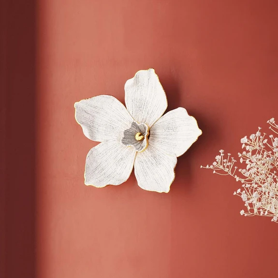 Oggetto da parete Orchidea - un elegante fiore di orchidea in bianco, realizzato a mano Da collocare in camera da letto, in soggiorno o in corridoio: Con il suo grazioso fiore in un lussuoso formato XL, questo oggetto da parete Orchidea crea atmosfera in ogni casa. L'orchidea simboleggia l'amore, la bellezza e la giovinezza. Il design elegante della decorazione da parete in bianco è ulteriormente enfatizzato da dettagli dorati. L'orchidea aggiunge un accento elegante e femminile a spazi abitativi romantici e arredati in modo classico.