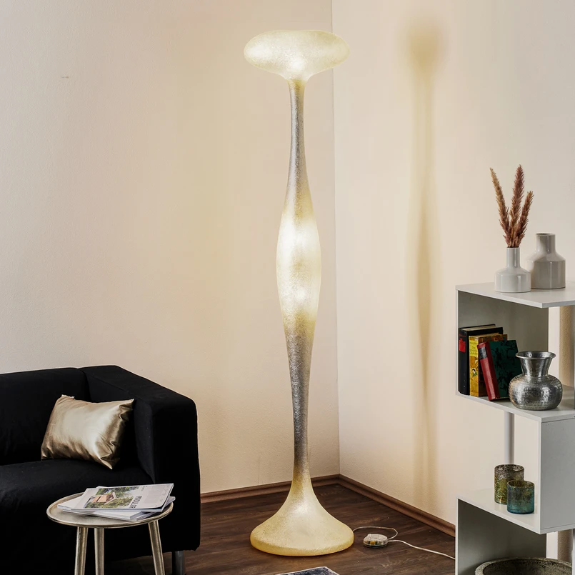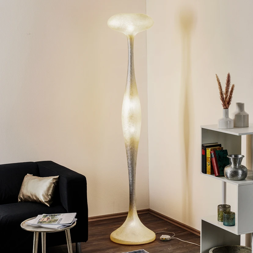 Questa piantana di design dalle forme artistiche ed estremamente armoniose convince per il suo design asimmetrico e molto espressivo. Il corpo è stato realizzato in fibra di vetro ecologica con un elaborato lavoro artigianale. All'interno del diffusore si trova un supporto in metallo per la lampadina, che può essere rimosso per sostituire la lampadina. La piantana E.T.A. garantisce un'illuminazione molto suggestiva ed è un elemento di design unico che testimonia la massima perfezione. L'intensità della luce può essere regolata con il dimmer integrato. E.T.A. è disponibile nei colori arancione e argento.