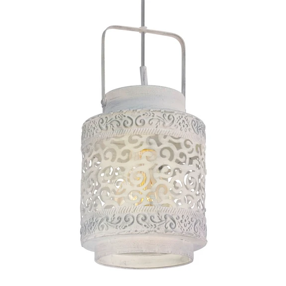 La bella lampada a sospensione Mariola sembra un lampione per giardino, completamente in acciaio di colore grigio e con un motivo carino a traforo, attraverso il quale la luce si diffonde scintillante nell'ambiente. In tal modo si può illuminare con stile un ambiente arredato in stile vintage.