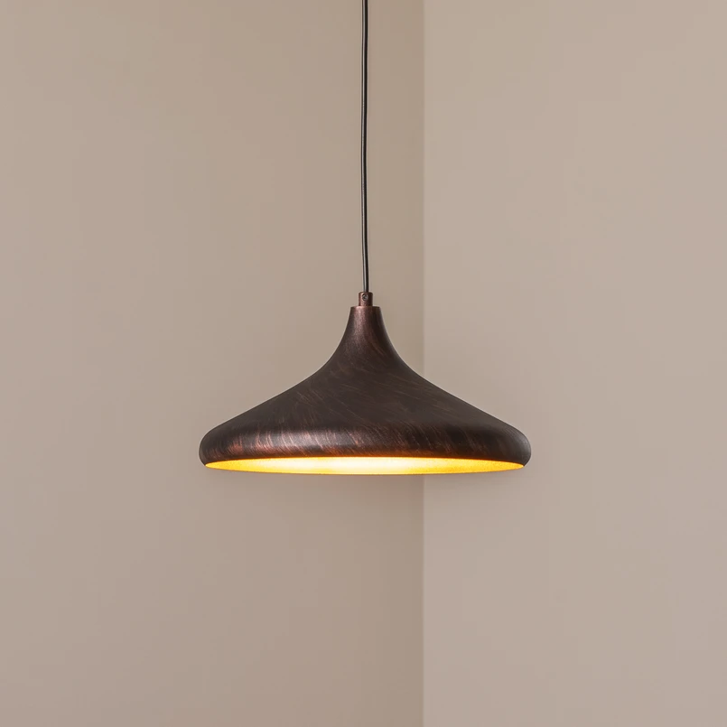 La lampada a sospensione Barek in nero-rame con interno del paralume dorato unisce un design elegante alla versatilità funzionale. Realizzata in metallo, questa lampada offre una struttura robusta e resistente che si integra perfettamente in diversi concept di arredamento. La combinazione di colori conferisce alla lampada un'eleganza senza tempo che mette in risalto sia il soggiorno che la sala da pranzo o la cucina.