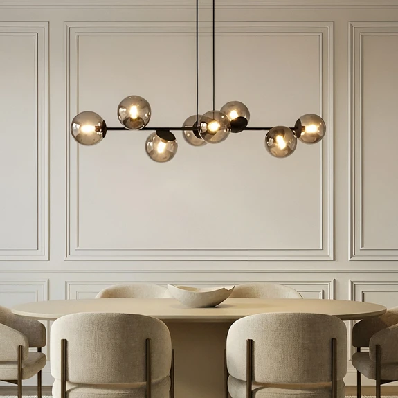 Lampada a sospensione Isamer: eleganza in grigio fumo per soggiorni e sale da pranzo La lampada a sospensione Isamer in grigio fumo conferisce un'atmosfera di eleganza e stile al soggiorno o alla sala da pranzo. Lo stile moderno di questa lampada si integra perfettamente negli interni contemporanei e crea un ambiente che invita al relax e alla socializzazione. Sebbene questo modello non sia dotato di dimmer, la luminosità può essere regolata in base alle preferenze personali installando un dimmer esterno per creare l'atmosfera desiderata. Con la lampada a sospensione Isamer, la luce diventa un elemento di design che trasforma gli ambienti ed evoca emozioni.