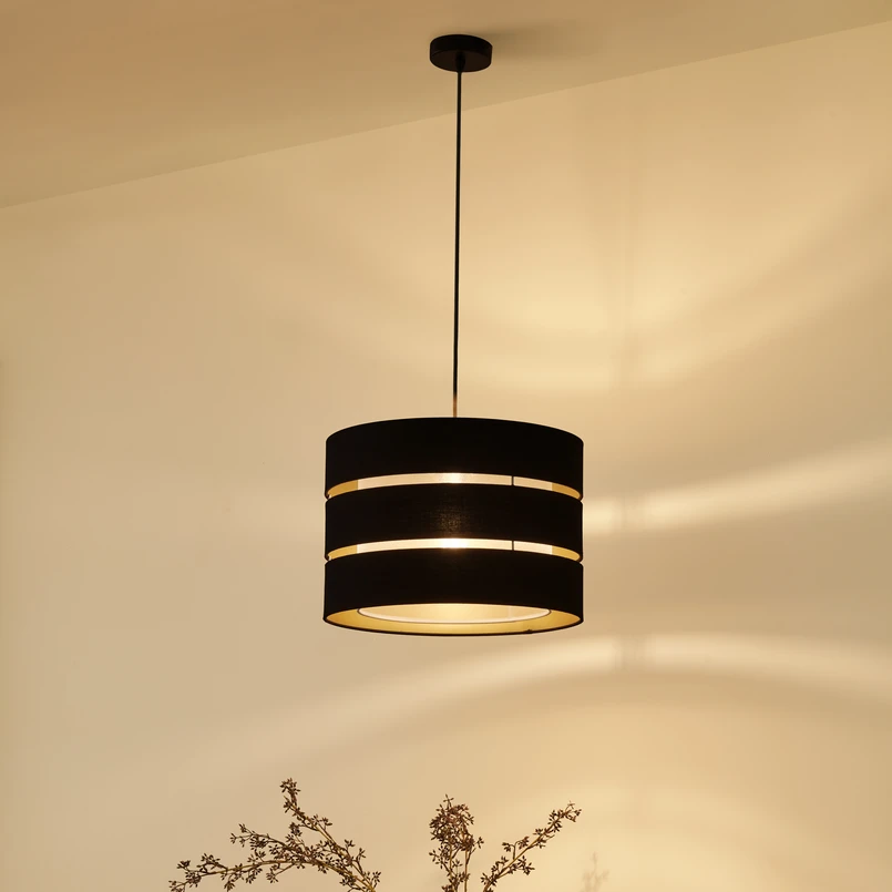 Tsomo - un'attraente lampada a sospensione per interni in un'eccitante combinazione di colori Questa lampada dal design accattivante illuminerà i vostri interni. La luce può essere dimmerata in base al proprio umore utilizzando un dimmer esterno (non incluso). La lampada ha uno stile eccezionale e si integra perfettamente nell'ambiente. Combina tutte le qualità e le caratteristiche speciali che definiscono il marchio Lindby. La plafoniera è disponibile nei colori nero e oro. Crea un'atmosfera piacevole e valorizza l'arredamento della vostra casa. L'apparecchio è adatto ad accogliere sorgenti luminose con base E27. I vostri interni saranno arricchiti da questa lampada, che ha trovato subito il posto giusto. Create un piacevole gioco di luci nella vostra casa con questa lampada.