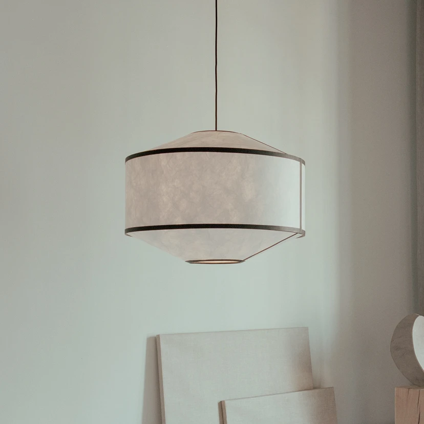 lampada a sospensione a 3 luci Kite, Ø 65 cm La lampada a sospensione a 3 luci Kite è un'opera di proporzione e astrazione, in cui silhouette pure e geometriche si combinano con una materialità liscia e strutturata. Delicati nastri delineano le sagome, una raffinatezza tecnica che aggiunge profondità e contrasto. All'interno del paralume sono presenti portalampada per tre lampadine E27 liberamente selezionabili (non incluse, vedi accessori). Le lampade a sospensione Kite, esposte insieme o singolarmente, fungono da elemento scultoreo luminoso.