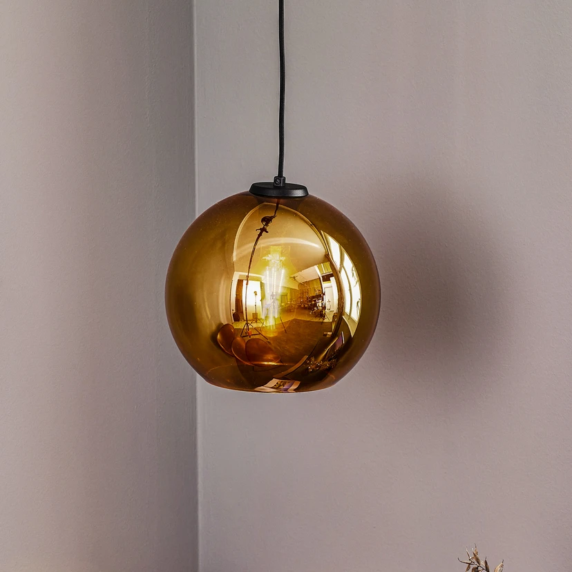 La lampada a sospensione Polaris unisce un design moderno a una lavorazione di alta qualità ed è prodotta in Europa. Il suo vetro a specchio, in combinazione con accenti dorati e neri, conferisce ad ogni ambiente un tocco speciale. Questa lampada non è solo un elemento che cattura lo sguardo, ma anche un'espressione di stile e raffinatezza, ideale per soggiorni, sale da pranzo, corridoi e cucine.