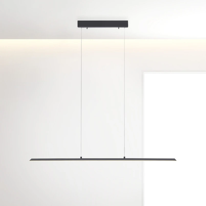 Lampada a sospensione Lite LED con colore di luce regolabile e dimmer a sensore La lampada a sospensione Lite LED è una fonte di luce semplice e senza tempo per il tavolo da pranzo o il bancone della cucina. Questa lampada dal design semplice può essere integrata in qualsiasi stile di arredamento, fornisce un'illuminazione a risparmio energetico grazie alla moderna tecnologia LED e può essere regolata in tre fasi con la tecnologia CCT nel colore di luce ed è anche dimmerabile, in modo da rendere possibile un design di illuminazione molto variabile. Il sensore incorporato nella parte superiore del paralume su un lato dell'apparecchio consente di accendere e spegnere l'apparecchio con un movimento di strisciamento, mentre il sensore sull'altro lato del paralume permette di regolare il colore della luce in tre fasi (da bianco caldo a bianco neutro) e di dimmerare la luce tenendo la mano sul sensore. L'impostazione della luce selezionata viene memorizzata dalla funzione di memoria, in modo che la prossima volta che si accende la luce si attivi di nuovo esattamente questa illuminazione.