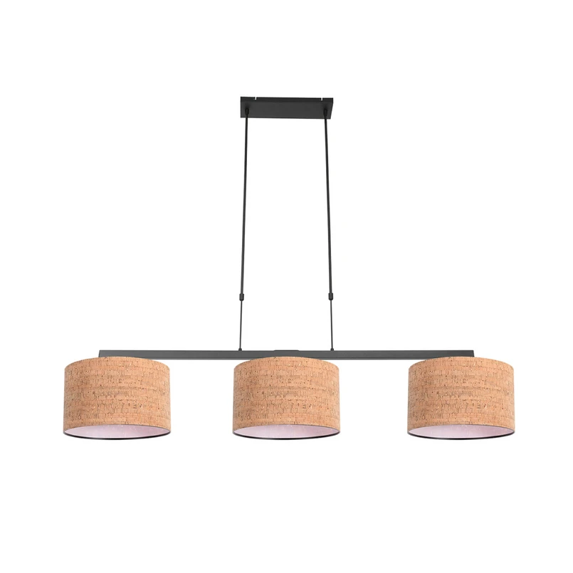 Lampada a sospensione Stang, nero/marrone, lunghezza 140 cm, sughero, a 3 luci.