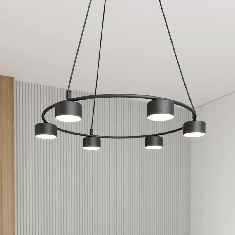La lampada a sospensione Starlit, realizzata in acciaio di alta qualità, unisce un design moderno alla versatilità funzionale. La sua elegante finitura nera si integra perfettamente in diversi ambienti, sia nel soggiorno che nella sala da pranzo. La lampada colpisce per le sue sei sorgenti luminose che garantiscono un'illuminazione uniforme e piacevole.