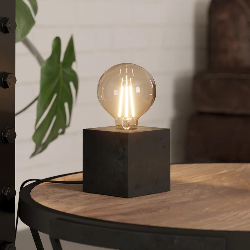 Lampada da tavolo Prestwick 2 cubo di legno, nero