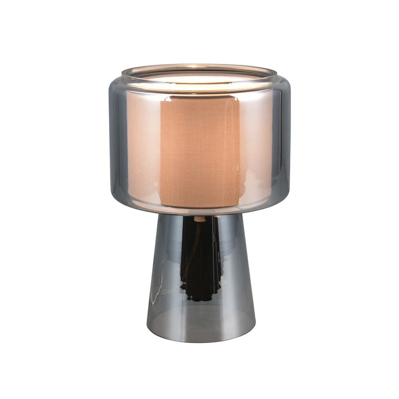 Lampada da tavolo Rocka con paralume in vetro cromato