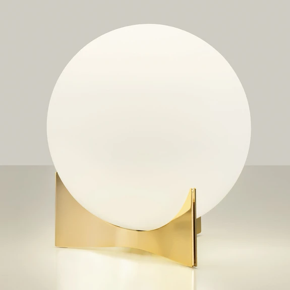 Lampada da tavolo Terzani Oscar, colore oro, Ø 20 cm, vetro opalino