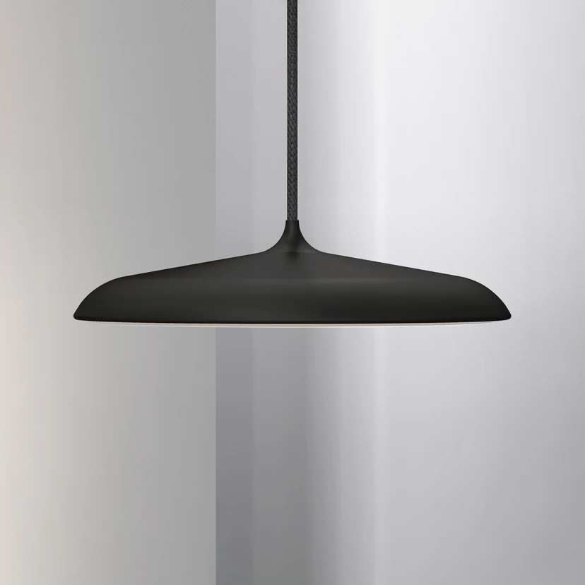 Lampada a sospensione LED piatta Artist 25 in neroElegante e moderna, la lampada a sospensione LED Artist ha una forma piatta e un colore nero. L'apparecchio con ampia diffusione della luce è ideale per illuminare un tavolo in cucina o in sala da pranzo.
