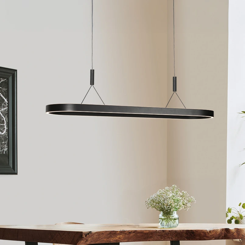 La lampada LED a sospensione Mykty unisce un design moderno a un'illuminazione funzionale. Realizzata in metallo e plastica, convince per le sue forme chiare e l'elegante colore nero. Le sorgenti luminose a LED integrate forniscono una luce bianca calda che crea un'atmosfera piacevole. Con un'eccellente resa cromatica di 90 Ra, i colori vengono riprodotti in modo particolarmente naturale e vivace.