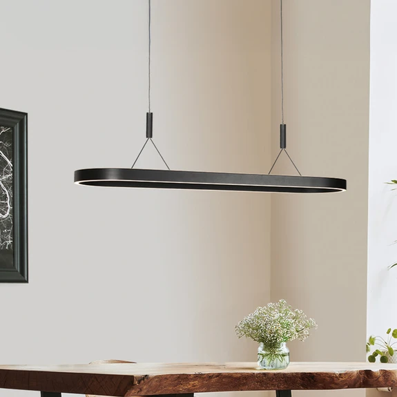 Lampada LED a sospensione Mykty, nera, lunghezza 120 cm, metallo, a 2 luci.