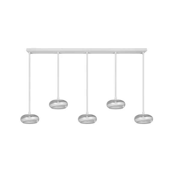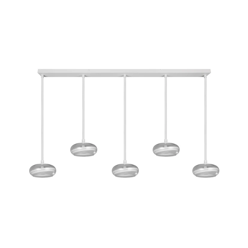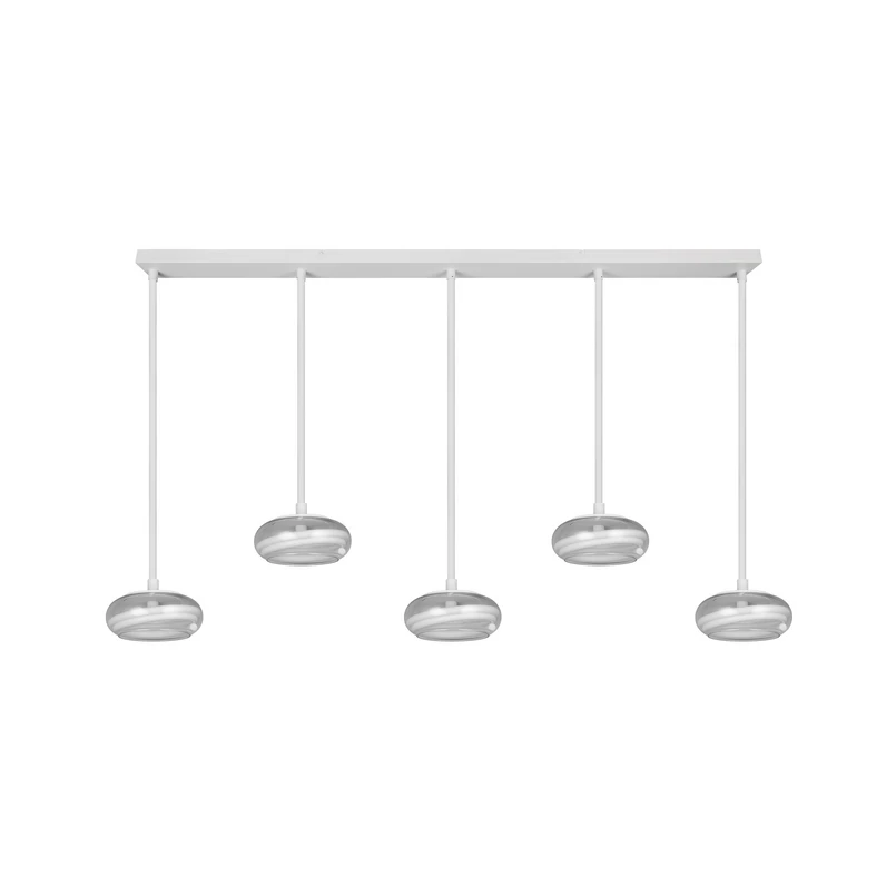 Lampada LED a sospensione Tarsia, bianco opaco, lunghezza 161 cm, vetro, a 5