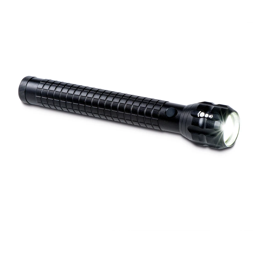 Con il suo elevato flusso luminoso, la torcia MAULkronos L in alluminio anodizzato nero opaco è il modello più potente della serie MAULkronos. Il cono di luce della torcia può essere regolato in modo continuo. MAULkronos L brilla fino a 280 metri. Dotato di CREE LED. È possibile impostare 3 diversi livelli di luce: luminosità al 100%, luminosità al 30% e luce stroboscopica (lampi di luce) per prevenire i pericoli. I livelli di luce possono essere comodamente regolati con una sola mano utilizzando il pulsante gommato sul lato anteriore. Il cono di luce è dotato di una funzione di zoom per ottenere una luce diffusa da vicino o una luce concentrata da lontano. Si può regolare facilmente spostando il riflettore in avanti o indietro.