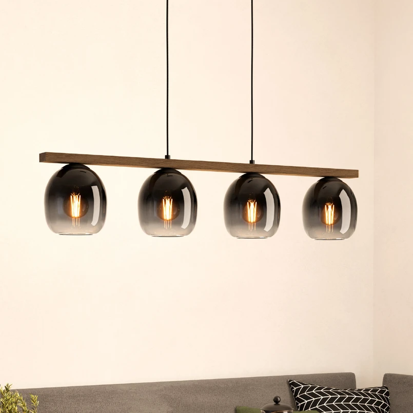 Lampada sospensione Filago, 4 paralumi vetro fumè