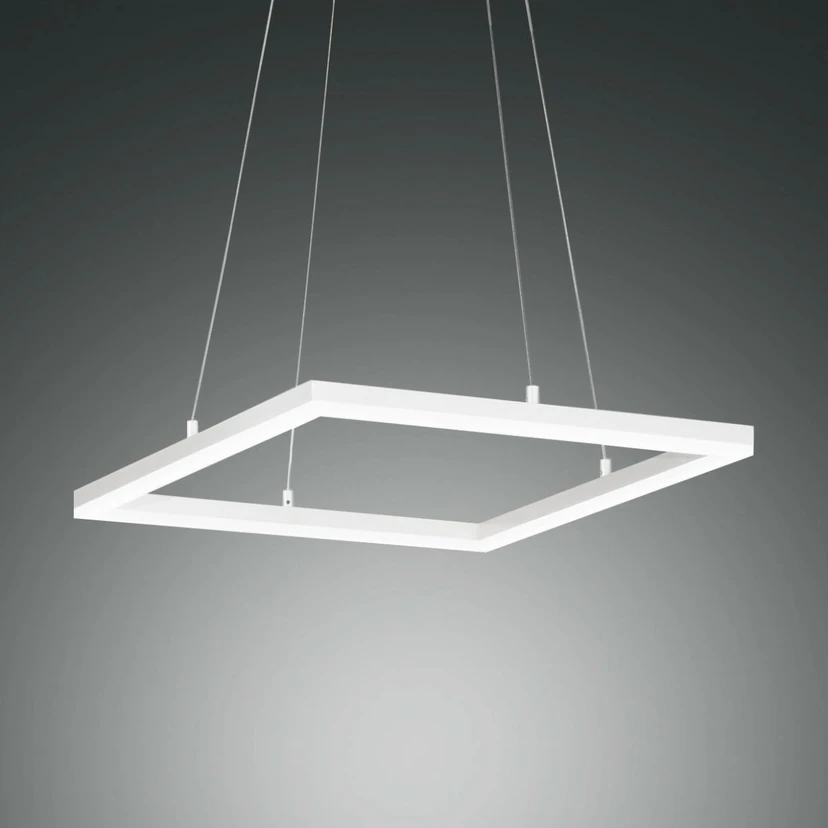 Il moderno apparecchio a cornice Bard, qui presentato come elegante ed elegante sospensione in bianco, è dotato di LED dimmerabili, che con la loro luce bianca calda forniscono un'illuminazione ideale, ad esempio sopra i tavoli. Il design elegante qui è determinato da una cornice quadrata in metallo, verniciata in bianco, che ospita la tecnologia LED sotto un coperchio di plastica sul lato inferiore. Bard è un apparecchio a sospensione moderno ed elegante, che può essere utilizzato molto bene nelle cucine, nelle sale da pranzo o nei salotti.