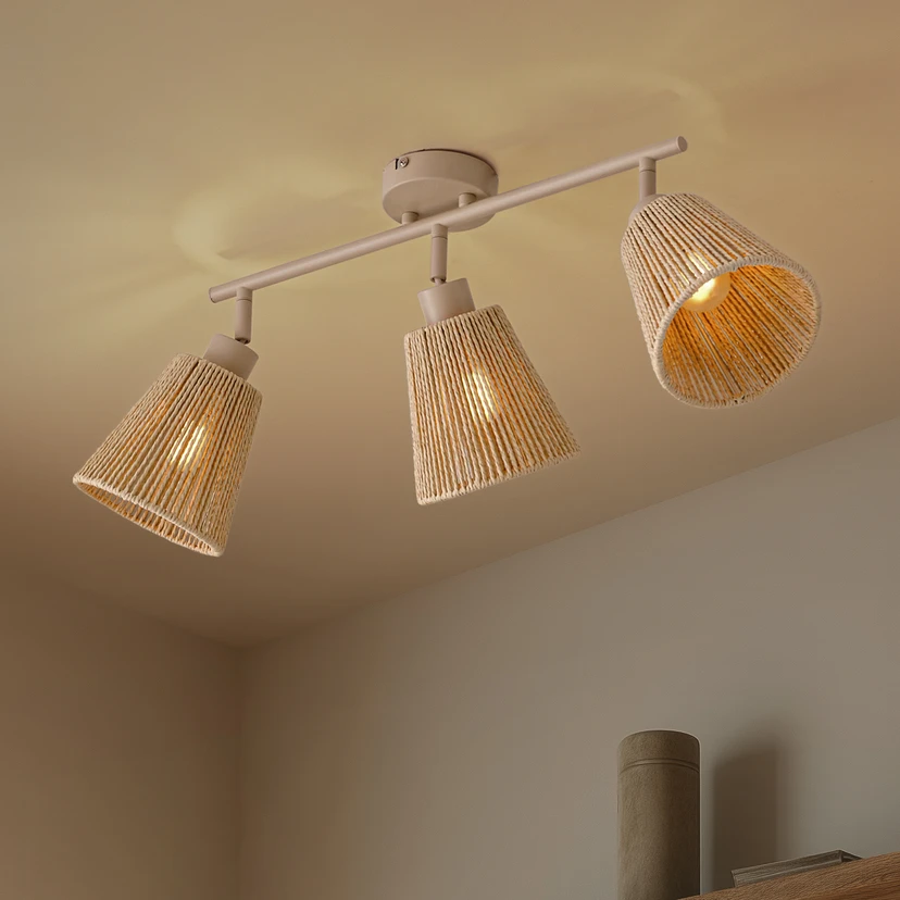Il faretto da soffitto Anuva unisce l'estetica scandinava alla versatilità funzionale. Realizzato in una combinazione di carta e metallo, emana un'eleganza naturale che si integra armoniosamente in diversi ambienti domestici come il soggiorno e la sala da pranzo. Il colore beige sottolinea il design discreto e crea un'atmosfera calda e accogliente.