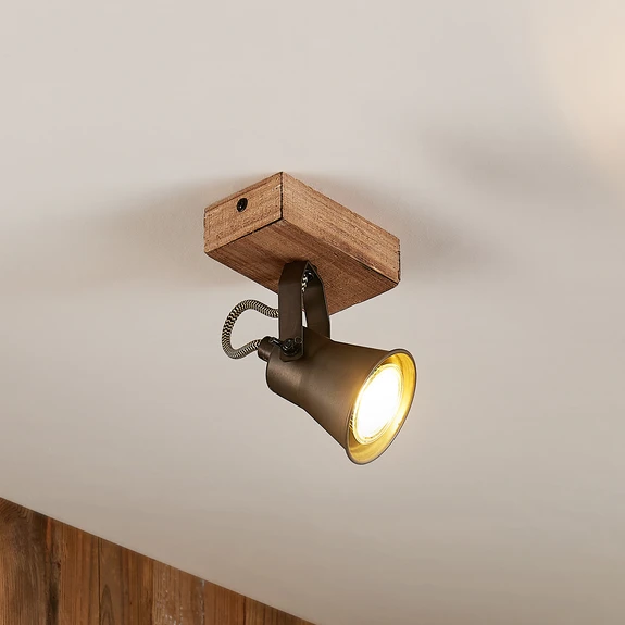 Faretto a soffitto Grandesa con spot regolabile su tettoia in legno