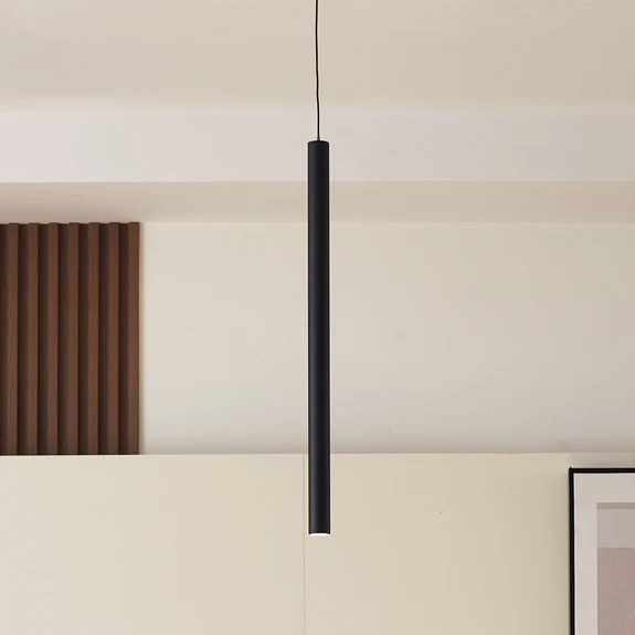 Lindby Lampada LED a sospensione Lumaro, nero, Ø3cm, alluminio, 48V, dimmerabile